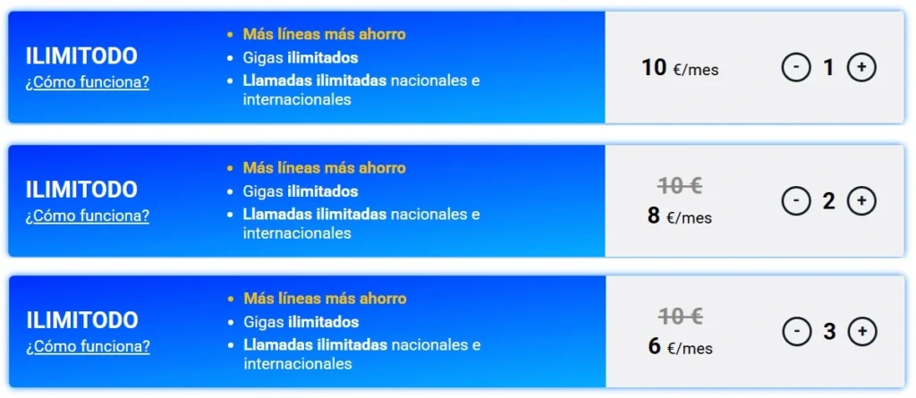 El Ilimitodo es tu tarifa. Llamadas nacionales e internacionales y gigas ilimitadas. Además ahora, ¡a mas líneas más ahorro!. Disfruta tú y tu familia de esta novedad.